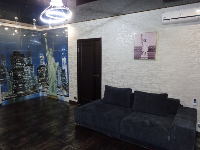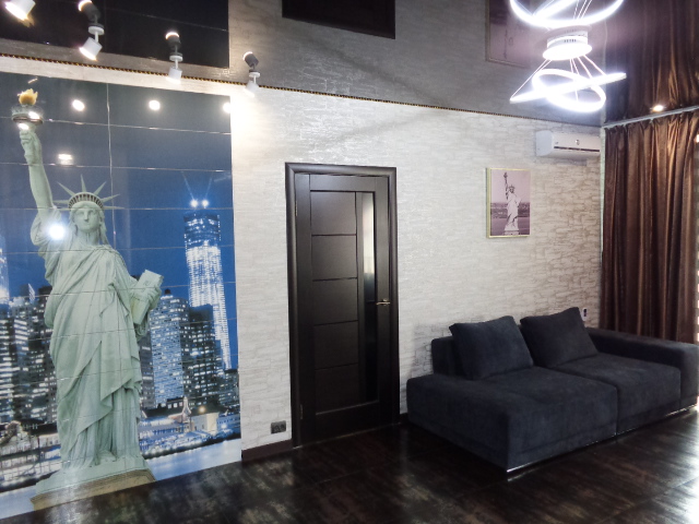 Сучасна квартира з дизайнерським ремонтом знаходиться в самому центрі міста, через дорогу McDonalds, Торговий Дім, у дворі платна парковка. Є все для комфортного відпочинку: LCD ТБ, у кожній кімнаті кондиціонер, електрочайник, мікрохвильова піч, холодильник, газова плита, Wi-Fi, Пральна машина, 2-місна Джакузі з гідромасажем, Італійське ліжко. Можна використовувати як фотостудію.