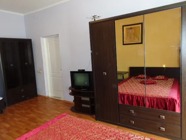VIP-кімнатна квартира тільки після нового ремонту. У квартирі є нова двоспальне ліжко з ортопедичним матрацом, диван, шафа-купе, журнальний столик, вбудована кухня. Для Вашого комфорту квартира забезпечена: Кондиціонером, Бойлером, Wi-Fi, НВЧ-піч, Ел-чайник, Супутникове ТБ, СТ-машина автомат та кольоровою підсвіткою натяжної стелі. Поряд цілодобовий супермаркет, аптека, ресторан, кафе, зупинка громадського транспорту, охороняємо стоянка. Працюємо цілодобово!