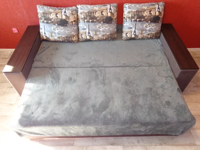 телебачення), двомісний розкладний диван. Вбудована кухня, техніка – холодильник, пральна машина-автомат, мікрохвильова піч, ел.чайник; повний комплект посуду.