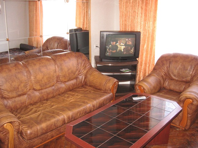 У залі є м'яка частина: диван та два великі крісла, журнальний столик навпроти телевізора (кабельне телебачення), двомісний розкладний диван. У спальній знаходиться двоспальне ліжко з ортопедичним матрацом, вбудована шафа-купе із дзеркалами до стелі. Вбудована кухня, техніка – холодильник, пральна машина-автомат, мікрохвильова піч, ел.чайник; повний комплект посуду.